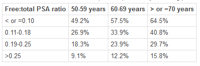 Any result between 4 and 10 ng/ml is the grey zone so a Free Test PSA ratio is provided to indicate the probability of finding prostate cancer on a needle biopsy, this is age dependant